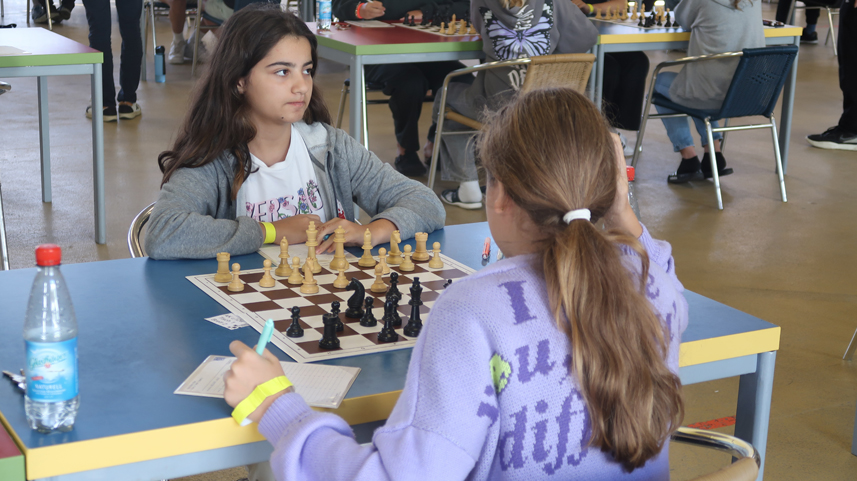 Nach etwas mehr als einer Stunde hatte Luisa ihre Partie gegen die Sechste der DEM 2025 AK u8, Olena Altshuler, gewonnen. Immer aktiv, mit guten Ideen, verhalfen drei ungenaue Züge ihrer Gegnerin zum Grundreihenmatt mit der Dame. Doch an den anderen Brettern musste hart gekämpft werden. Mathilda war, vor allem durch einen Freibauern, stark unter Druck geraten und war letztlich ohne Chance. Doch Flora siegte, nach zwei Stunde, gegen Anna Ulianova, nach einer guten Partie. Sie gewann im 24. Zug einen Springer und beim Mattangriff war sie etwas schneller. Drei Züge vor dem Matt gab ihre Gegnerin auf. Flora brachte das Quartett in Führung. Und ansonsten: immer das gleiche Bild: Malak + Gegnerin, der Trainer…
