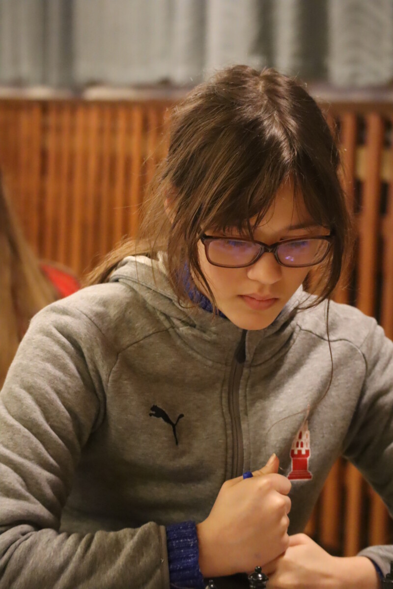Sie kämpfte weiter und genehmigte wenig später das Remis am 2. Brett von Sariana gegen Isabell Quauck. „Es war dreifache Zugwiederholung…“ sagte Sariana und der Wettkampf war gewonnen, weil Flora, total überlegen, gegen Luna Kasten gewonnen hatte. Und irgendwann hatte auch die Partie von Mona ein Ende. Sie endete Remis und unser Quartett gewann auch das letzte Spiel, dieses Mal mit 3:1.