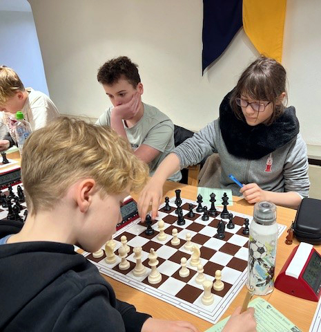 Die ersten Meldungen, die dann vom Finale kamen, waren durchaus positiv: „Flora kann gewinnen…“ (gegen Lotte Nönnig, R.S.), Malaks Position ist leider schlecht…Sascha (gegen Johan Pflug R.S.) konnte am Anfang gewinnen, leider hat er es nicht gesehen…“ Nach fast zwei Stunden gab es dann ein Remis an Brett 4. Eine Stunde später stand es 1,5:1,5. Flora hatte tatsächlich ihre Weißpartie gegen Lotte gewonnen und Malak leider gegen Mats Herzog (früher Union Schönebeck und Kaderspieler!) verloren.