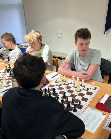 Julian spielte zu dieser Zeit noch. Seine Partie gegen Igor Shevchenko (DWZ: 2075!!) hatte durchaus ungewöhnlich am Dameflügel begonnen. Julian schien aber vorbereitet und hielt lange gut mit. Er musste gegen den sehr aktiven weißen Dameflügel, besonders gegen den a- Bauern spielen. Dieser wurde zum Freibauern und Julian geriet immer mehr in die Passivität. Mit Bauern weniger forcierte er den Tausch der Damen (25.) und eines Turms (30.). Nach über drei Stunden gab Julian, im 39. Zug schließlich auf. Und Emrah meldete: „Wir sind verloren.“ Doch ich denke, es ist keine Schande, so knapp (1,5:2,5) gegen den klaren Favoriten zu verlieren (fast 300 DWZ-Punkte im Durchschnitt mehr).